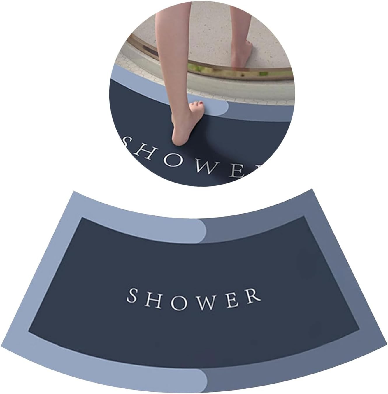 (Blue-grey, 50*80cm) Mott 50 Fast Drying Corner Shower Mat Non Ip Curved Bath Mat For Circular Shower Soft Absorbent Sector Carpet For Bathroom Comfot