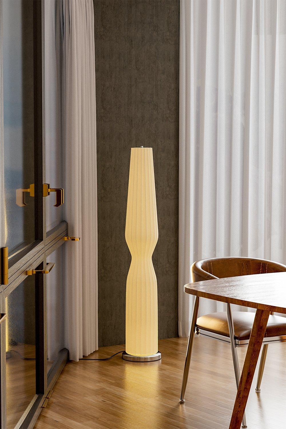 1.5m Curved Floor Lamp Brushed Nickel & Glass Shade Free Standing Living Room