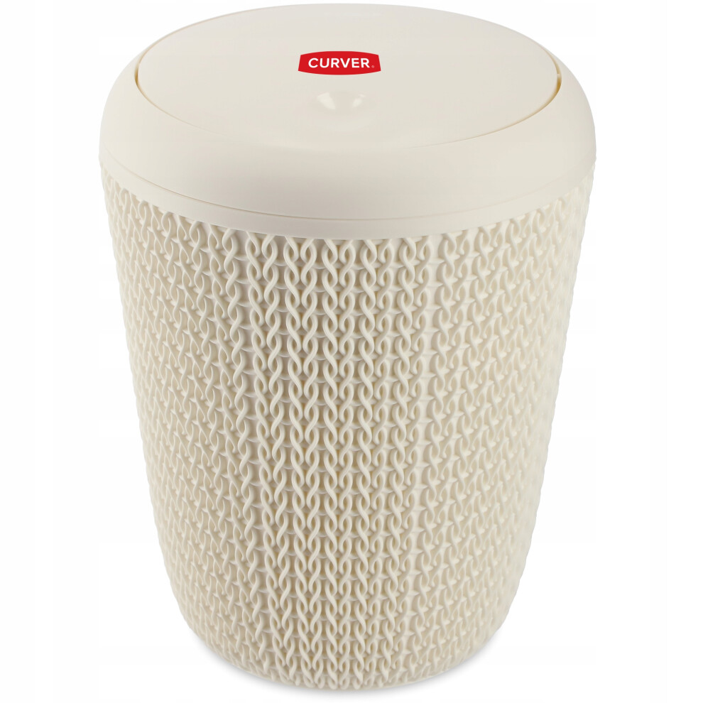 CURVER Bathroom Bin with Knitwear Design, plastic, off-white, 22,4 x 22,4 x 29,5 cm