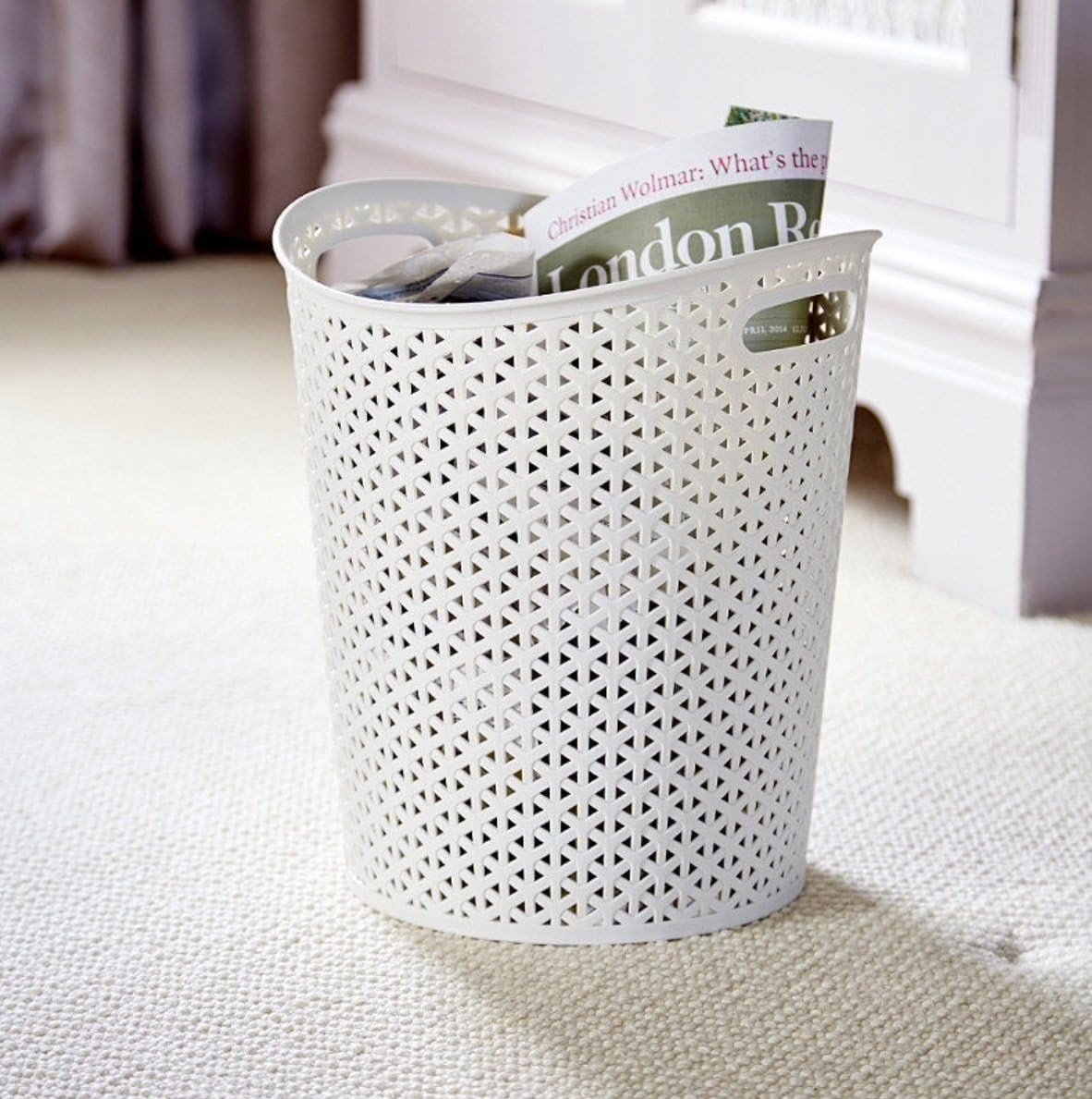 Cream Rattan Waste Paper Bin Curver Plastic Vintage Style Basket 13L