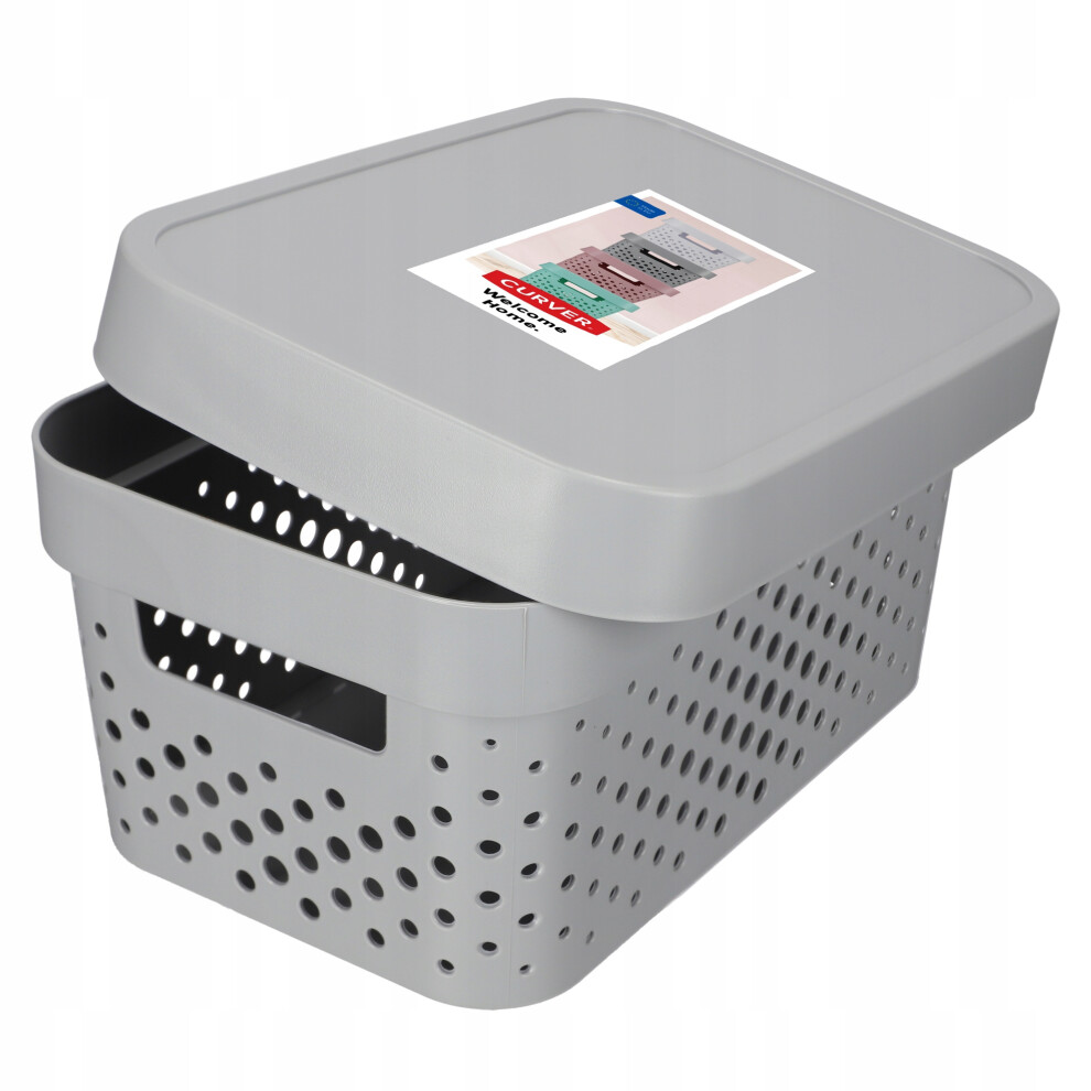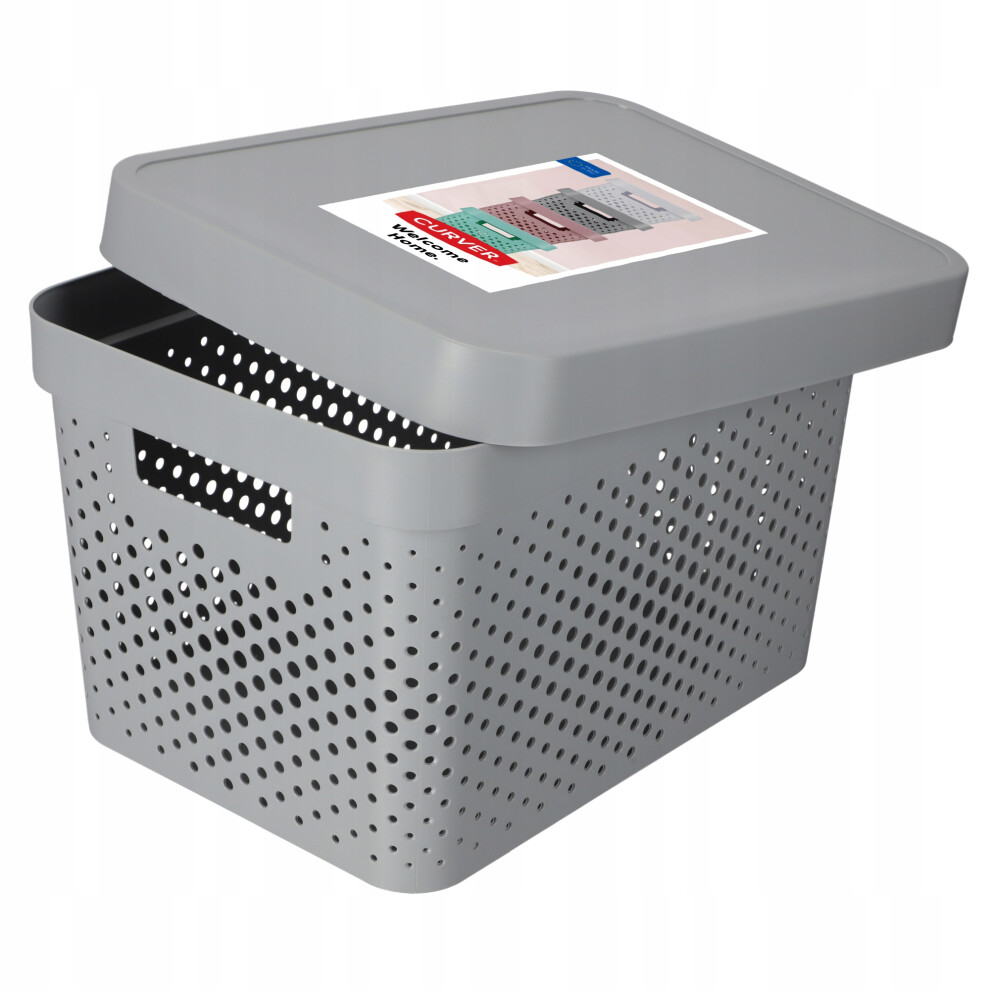 Curver Storage Box Infinity Points with lid 17L in Light Grey, 36.3x27x22.2 cm