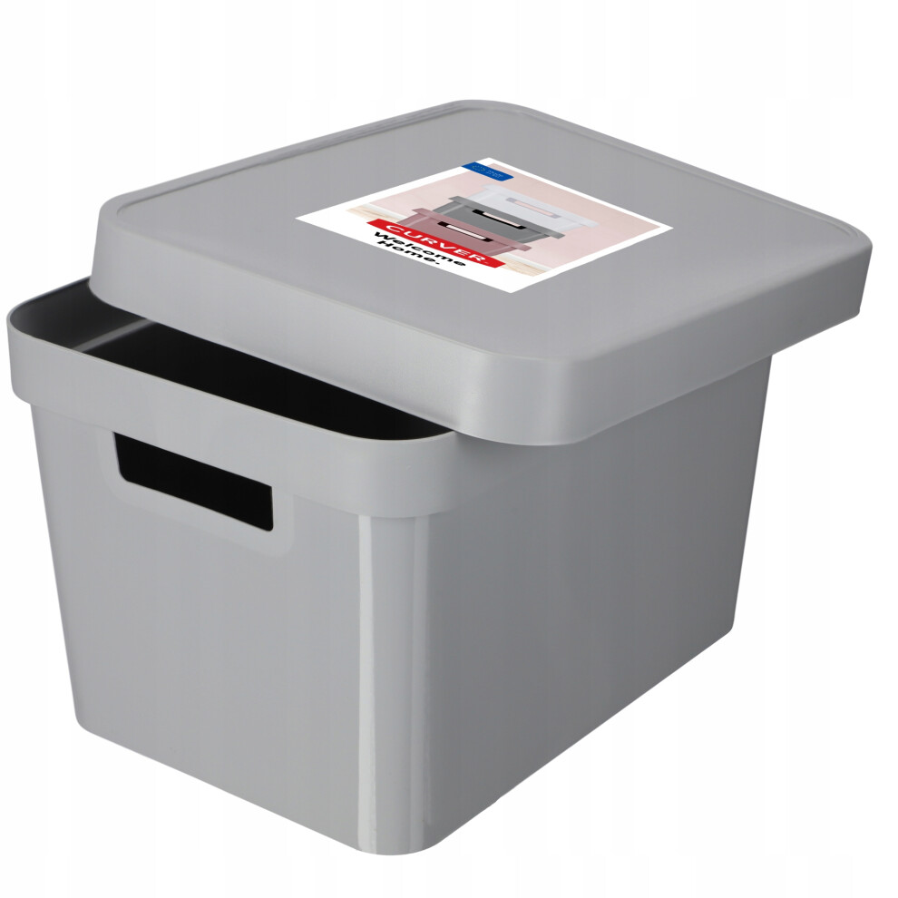 Curver Storage Box Infinity with lid 17L in Light Grey, 36.3x27x22.2 cm