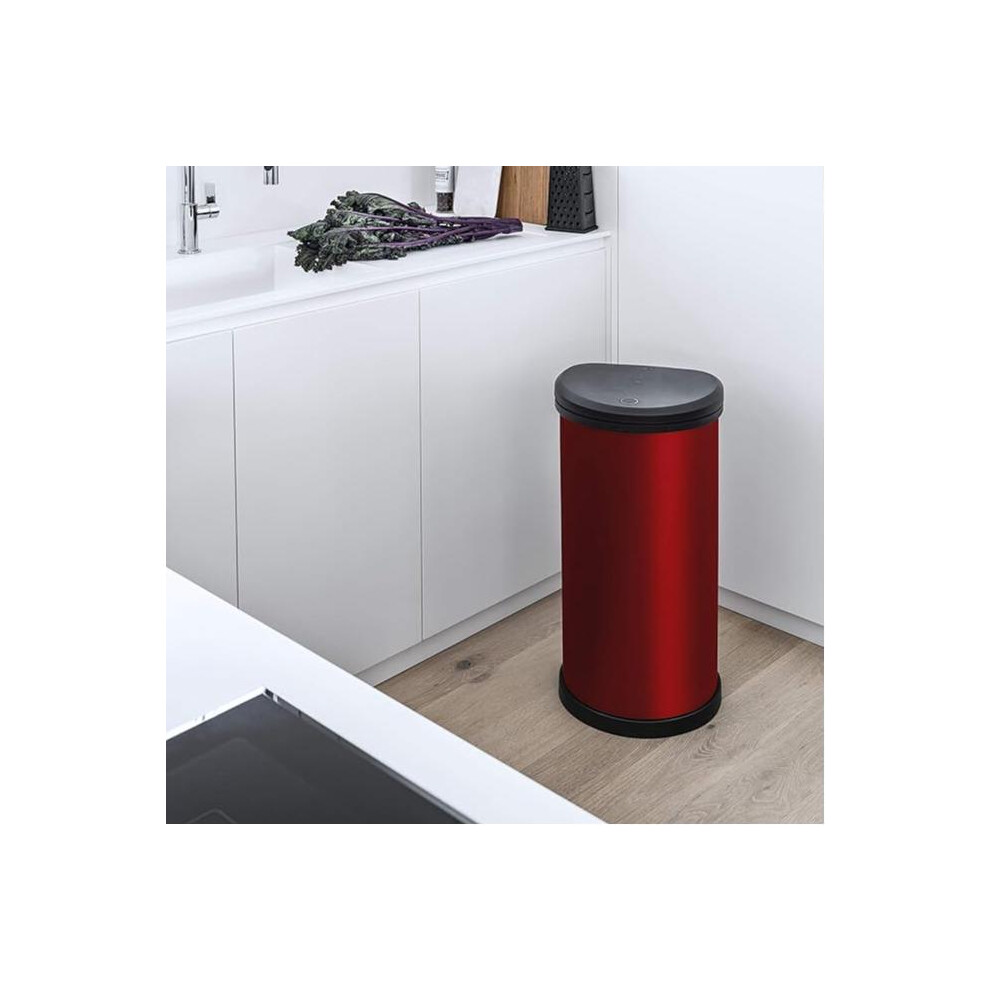 (Red) 40L Kitchen One Touch Deco Bin with Metal Effect, 70% Recycled Material
