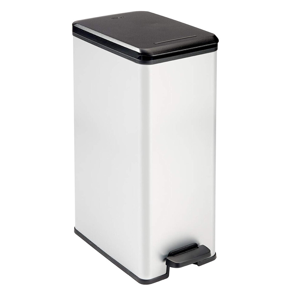 Curver Metal Effect Pedal Touch Slim Deco Kitchen Work Waste Bin 20L - Silver