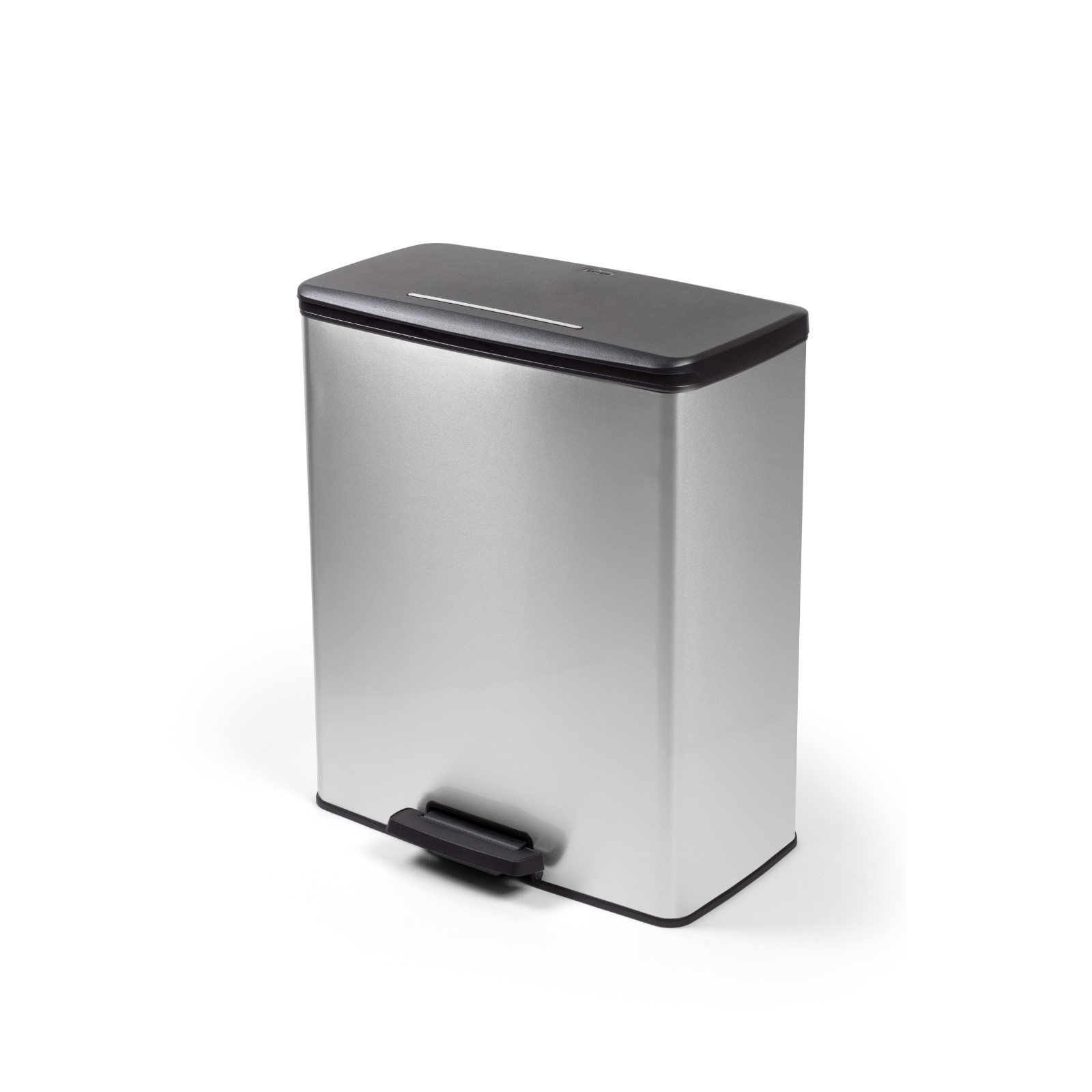 Slim Metal Effect 90% Recycled Kitchen Pedal Touch Deco Bin, Silver, 40 Litre