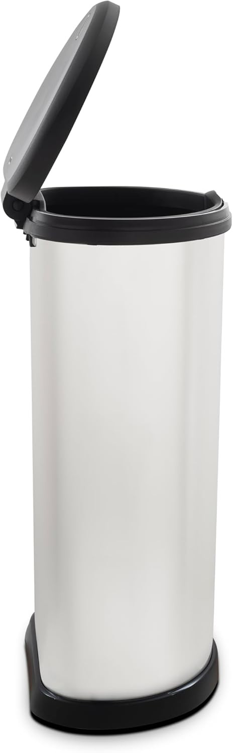 CURVER 40 L Metal Effect Plastic One Touch Deco Bin, Silver