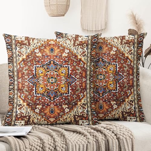 XPHZZL Pack of 2 Bohemian Style Linen Decorative Cushion Covers 60x60 cm Square Throw Pillow Covers 24x24 Inch Boho Style Pillowcases for Outdoor Home Decor Sofa Bedroom Car - Orange White