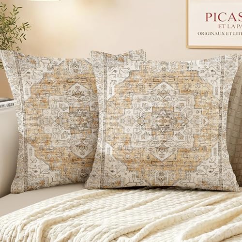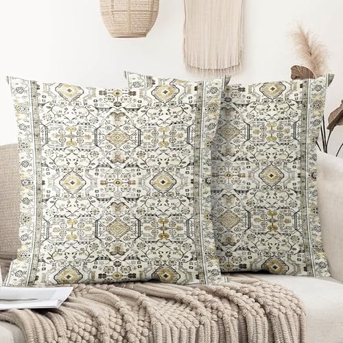 XPHZZL Pack of 2 Bohemian Style Linen Decorative Cushion Covers 60x60 cm Square Throw Pillow Covers 24x24 Inch Boho Style Pillowcases for Outdoor Home Decor Sofa Bedroom Car - Yellow Gray