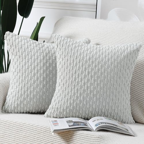 Madizz Pack of 2 Boho Corduroy Cushion Covers 24x24 inch, 60x60 cm, Greyish White Soft Decorative Throw Pillow Covers for Bedroom Sofa Pillow Shell
