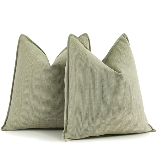 24x24 Pillow Covers (2 Pack), Stripe Corduroy Cushion Covers, 60x60 cm, Sage Green, Compatible with Standard Square Pillows