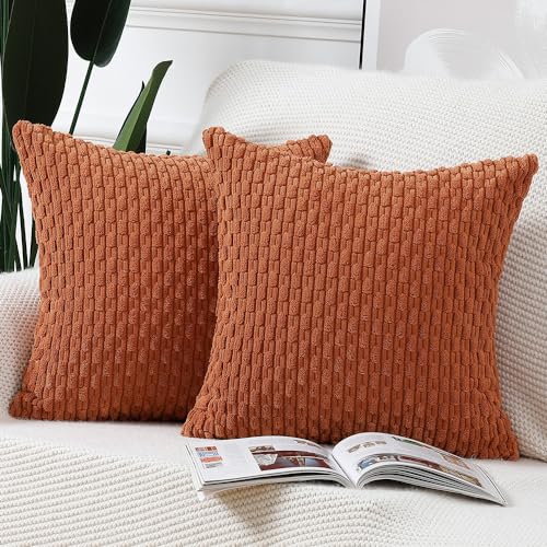 Madizz Pack of 2 Boho Corduroy Cushion Covers 24x24 inch, 60x60 cm, Rust Soft Decorative Throw Pillow Covers for Bedroom Sofa Pillow Shell