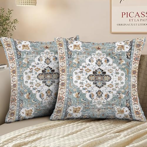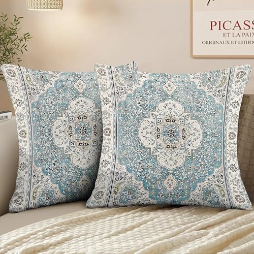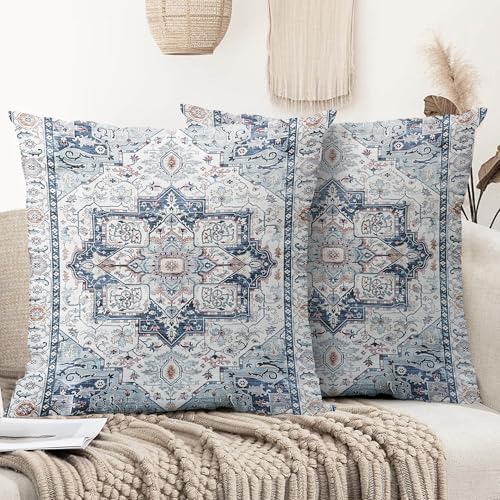 XPHZZL Pack of 2 Bohemian Style Linen Decorative Cushion Covers 60x60 cm Square Throw Pillow Covers 24x24 Inch Boho Style Pillowcases for Outdoor Home Decor Sofa Bedroom Car - Vintage Blue