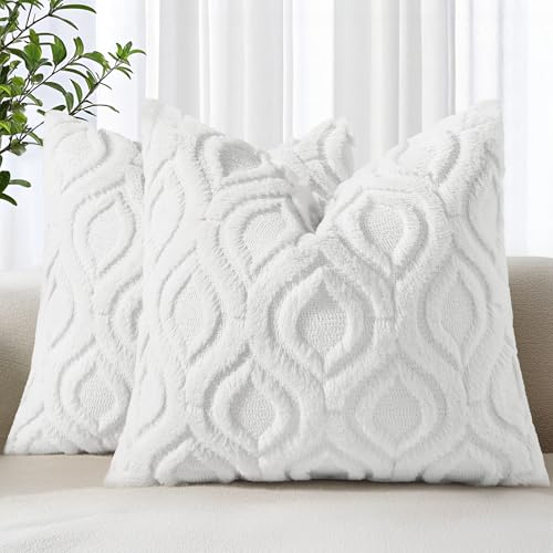 decorUhome Set of 2 Faux Fur Cushion Covers 60x60 cm, Decorative Soft Plush Fluffy Velvet Cushion Cover 24X24 Inch, Square Boho Neutral Pillow case for Sofa, White