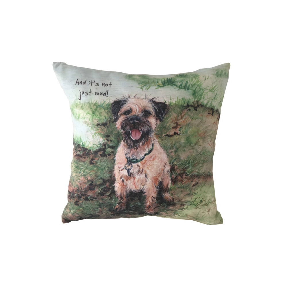 Border Terrier Not Just Mud! Cushion Little Dog Laughed Gift 40cm x 40cm Square