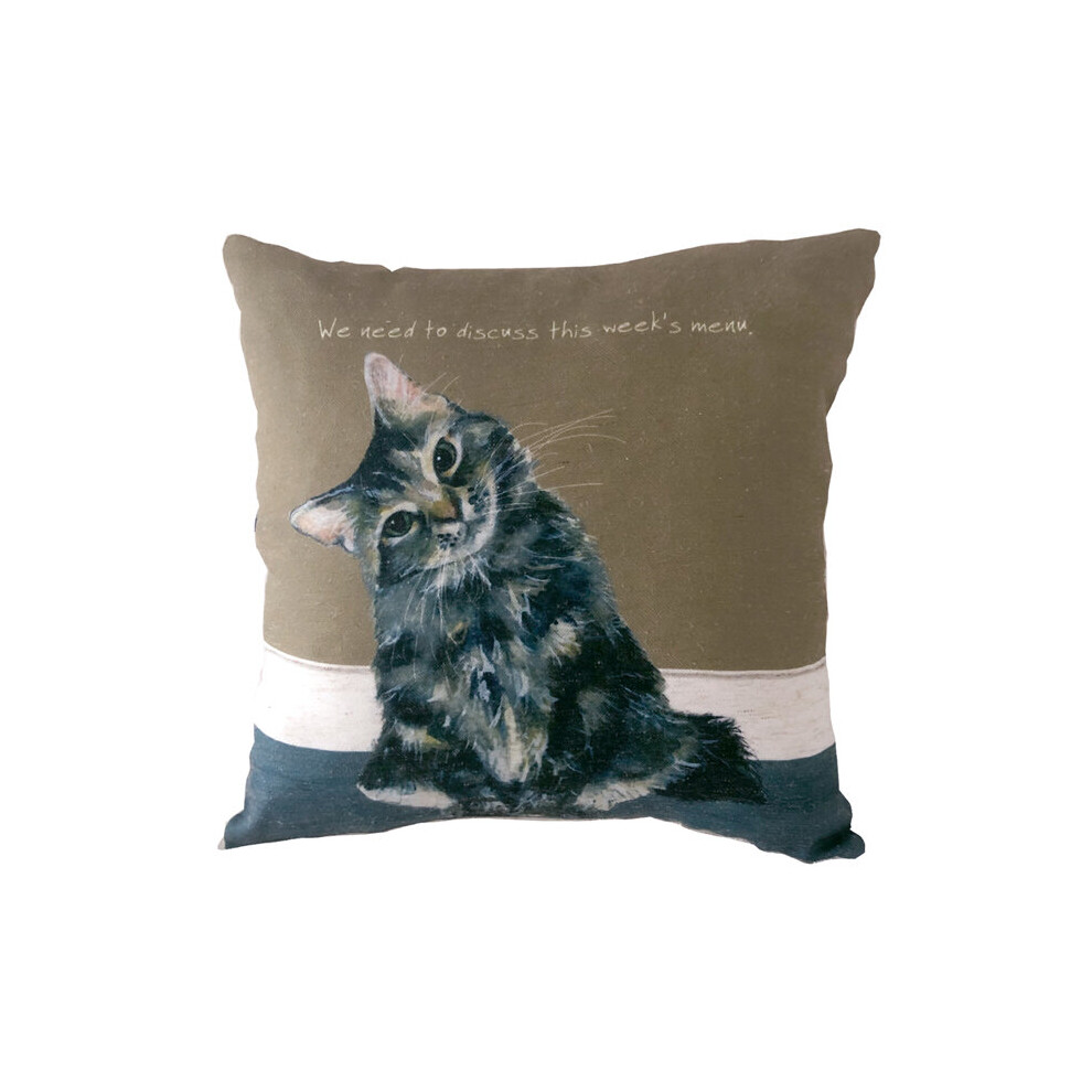 Tabby Cat This Week's Menu Cushion Little Dog Laughed Gift 40cm x 40cm Square
