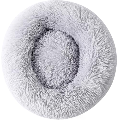 Feandrea PGW037G01 Fluffy Dog Bed, Cat Bed, Doughnut Cushion, Washable, Removable Padding, Long Plush, 50 cm Diameter, Light Grey