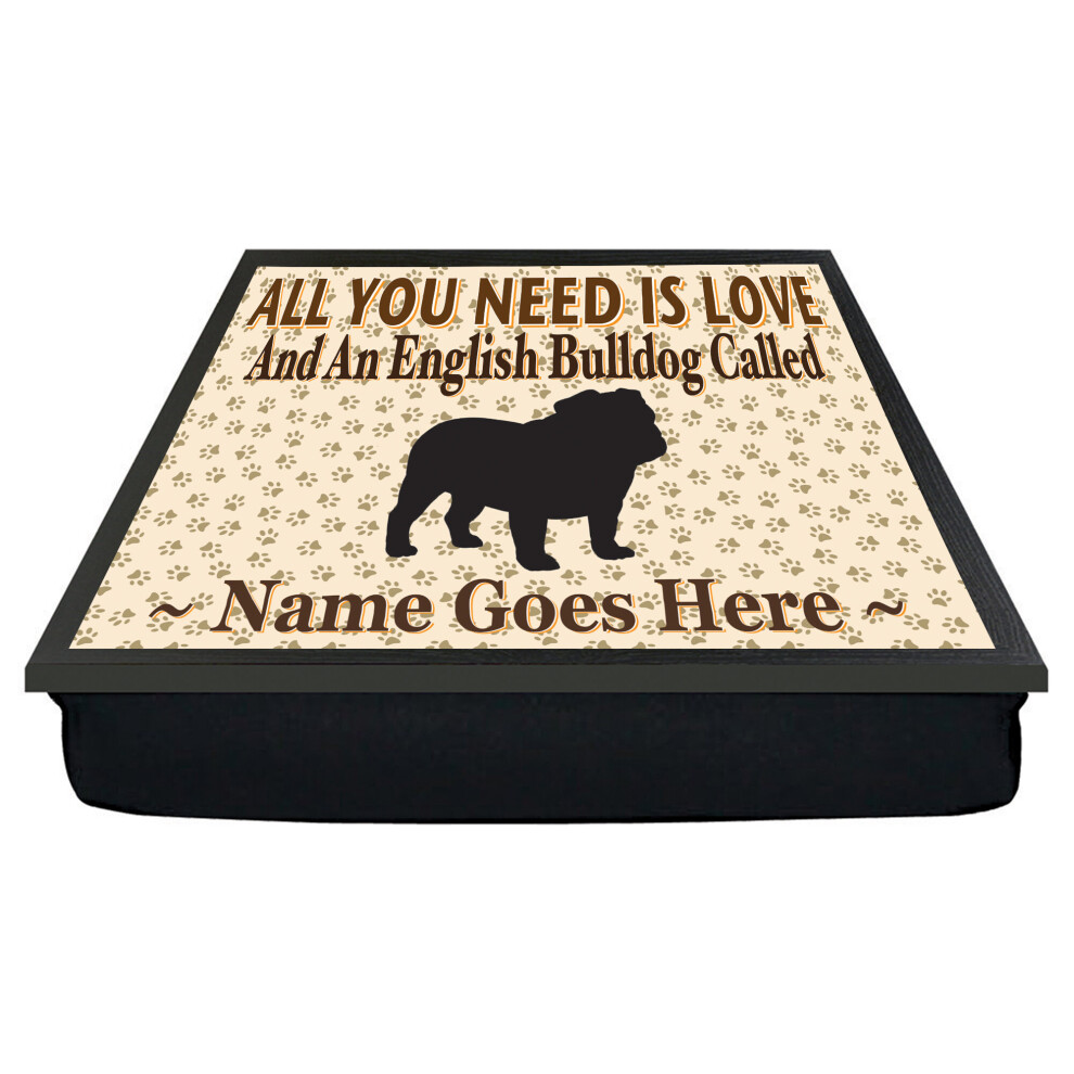 Personalised 'All You Need Is Love' English Bulldog Dog Breed Cushion Lap Tray Bean Bag Gift
