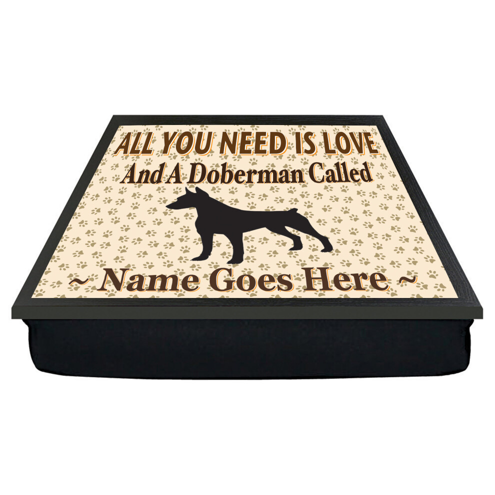 Personalised 'All You Need Is Love' Doberman Dog Breed Cushion Lap Tray Bean Bag Gift