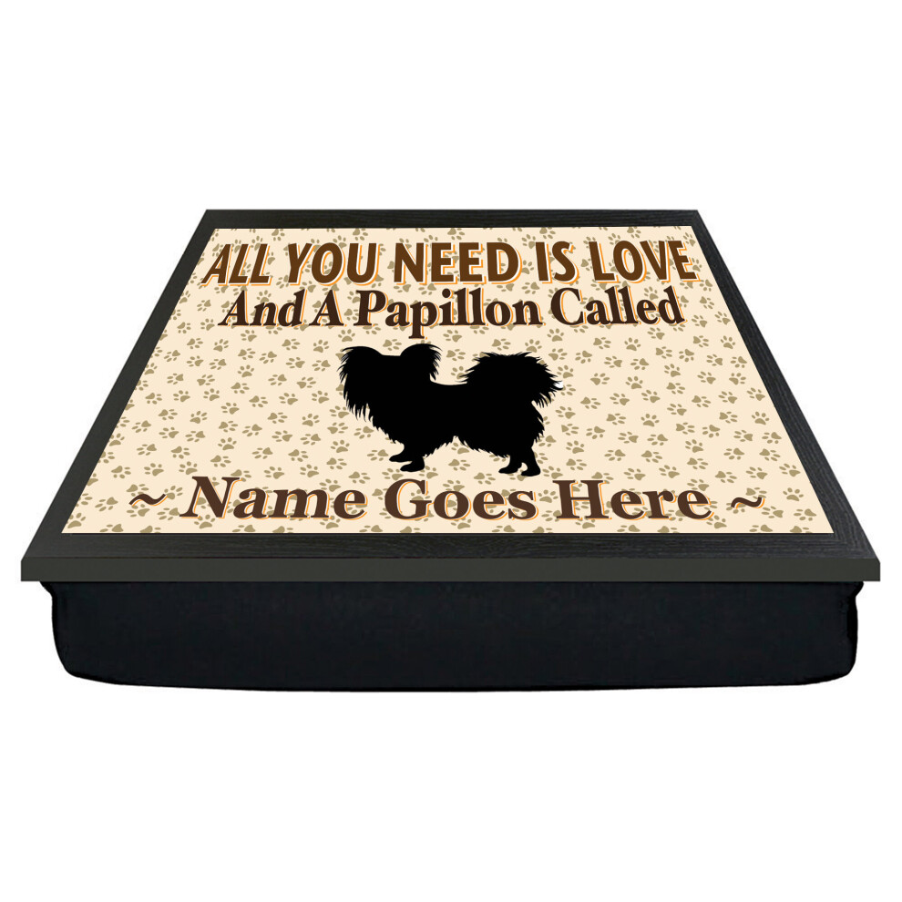 Personalised 'All You Need Is Love' Papillon Dog Breed Cushion Lap Tray Bean Bag Gift