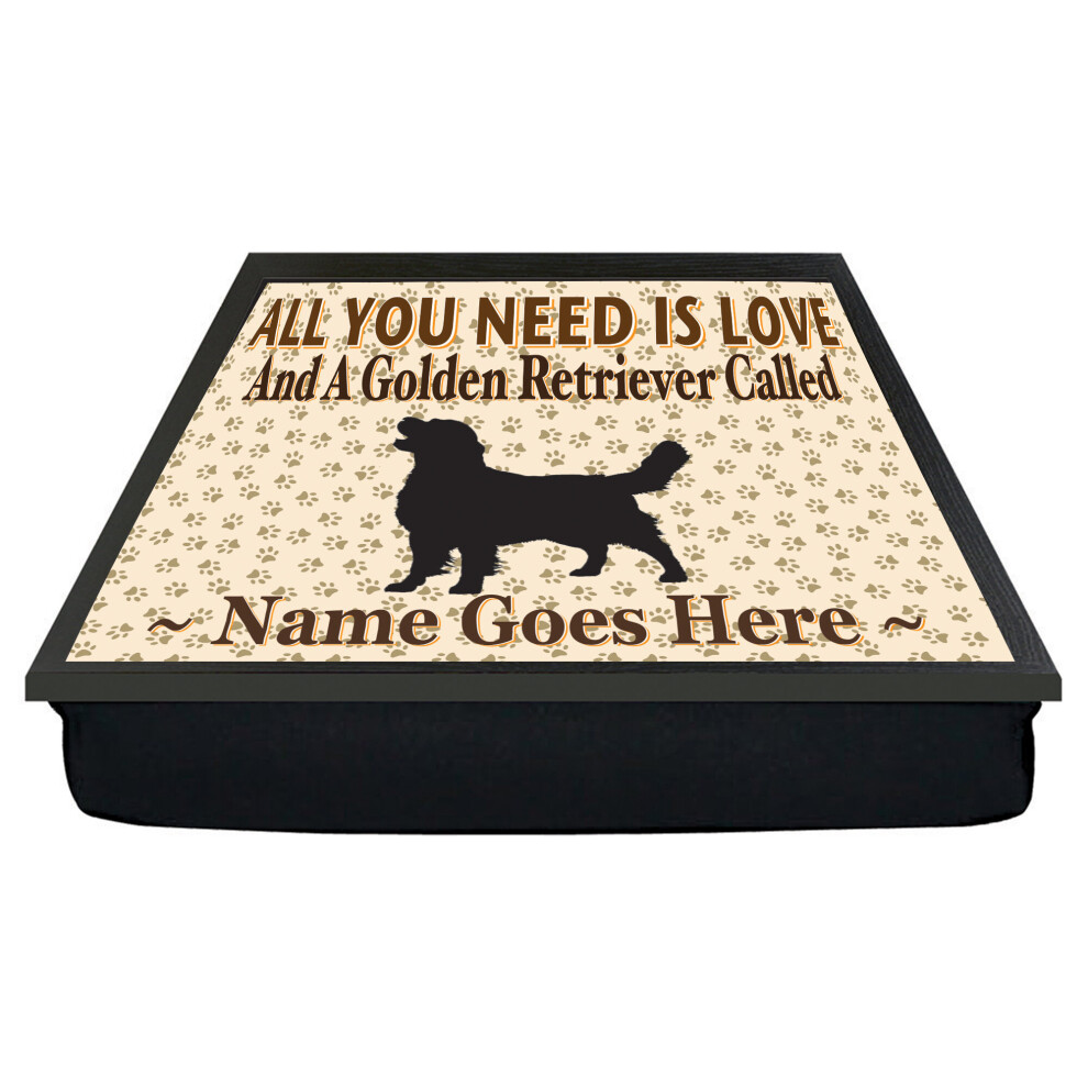 Personalised 'All You Need Is Love' Golden Retriever Dog Breed Cushion Lap Tray Bean Bag Gift