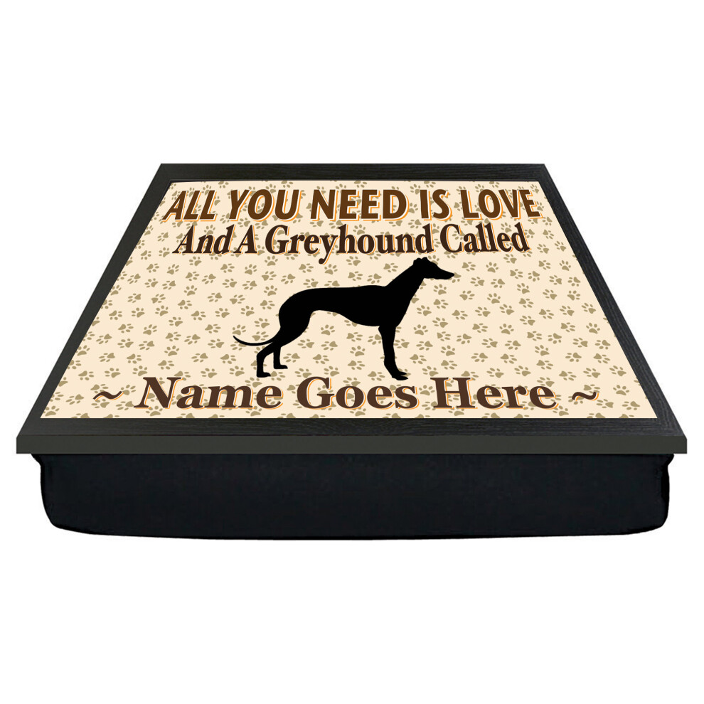 Personalised 'All You Need Is Love' Greyhound Dog Breed Cushion Lap Tray Bean Bag Gift