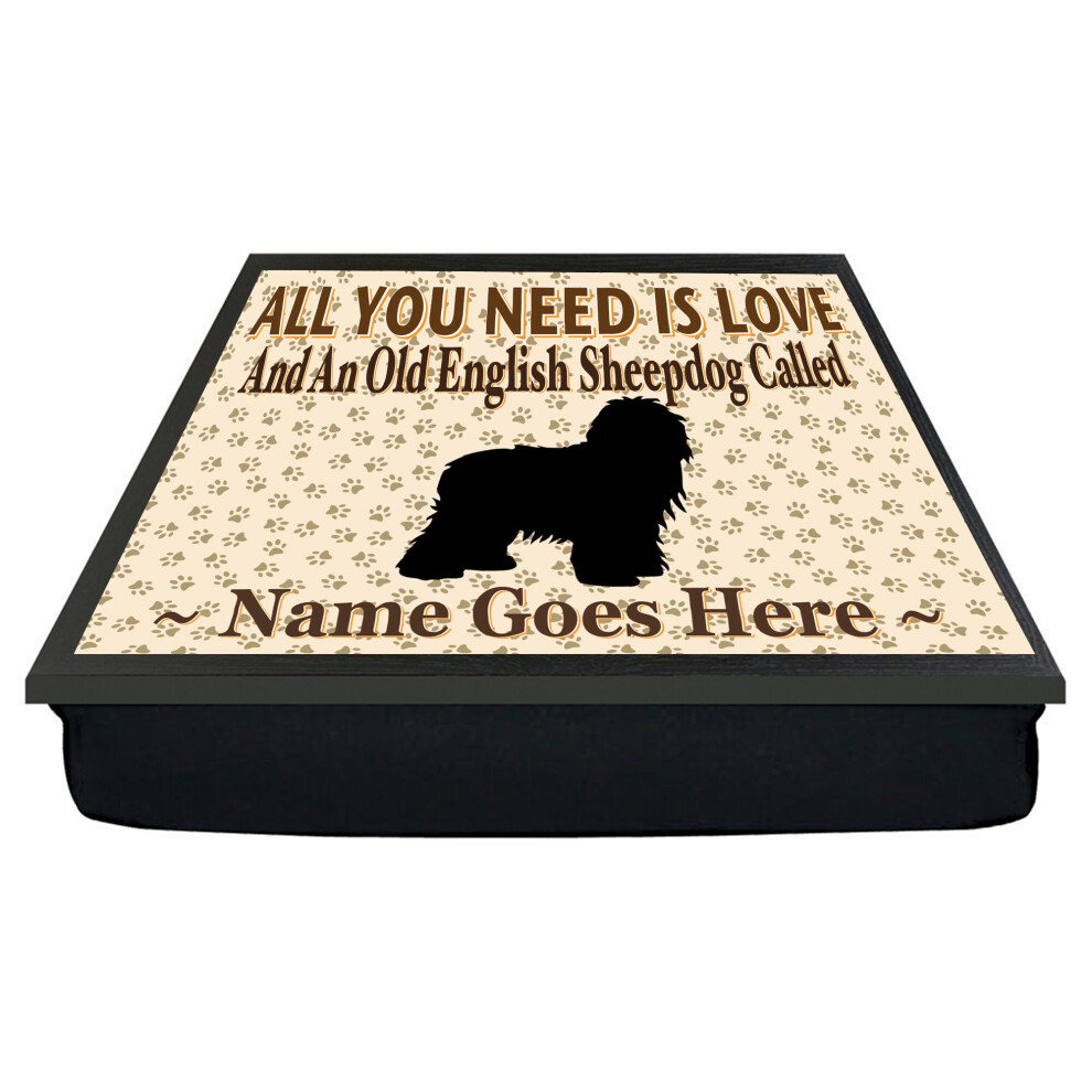 Personalised 'All You Need Is Love' Old English Sheepdog Dog Breed Cushion Lap Tray Bean Bag Gift