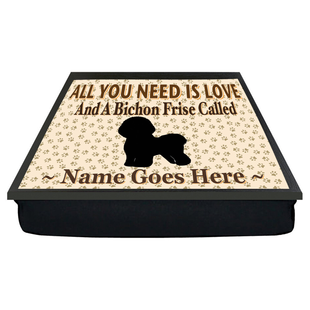 Personalised 'All You Need Is Love' Bichon Frise Dog Breed Cushion Lap Tray Bean Bag Gift