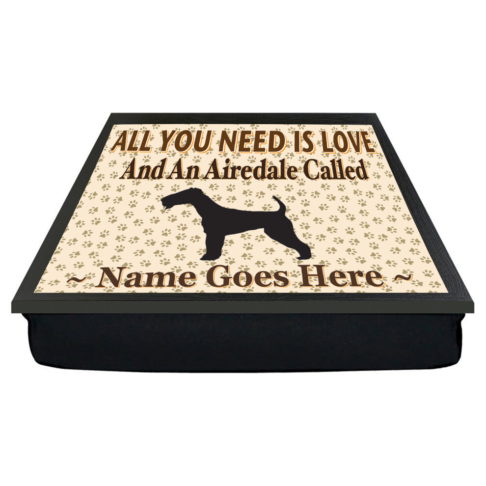 Personalised 'All You Need Is Love' Airedale Dog Breed Cushion Lap Tray Bean Bag Gift