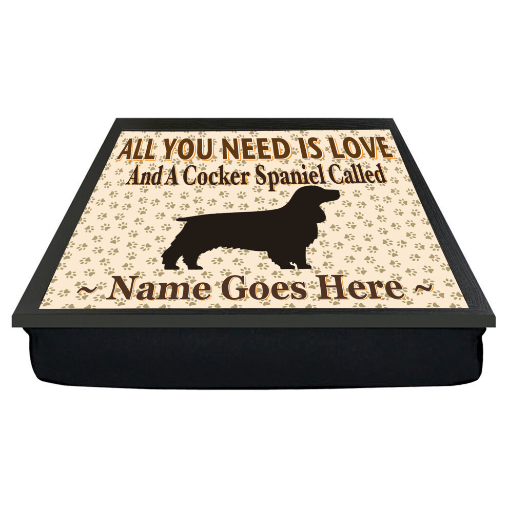 Personalised 'All You Need Is Love' Cocker Spaniel Dog Breed Cushion Lap Tray Bean Bag Gift