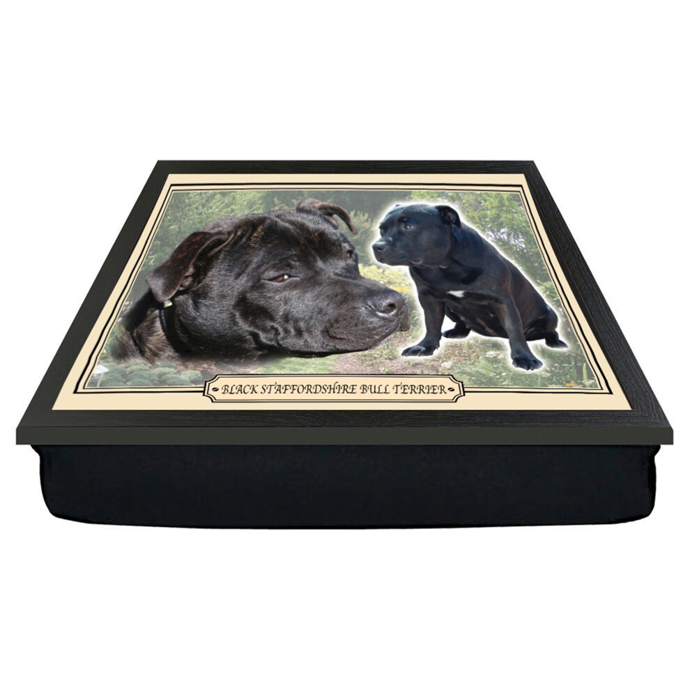 Black Staffordshire Bull Terrier Cushion Lap Tray Gift