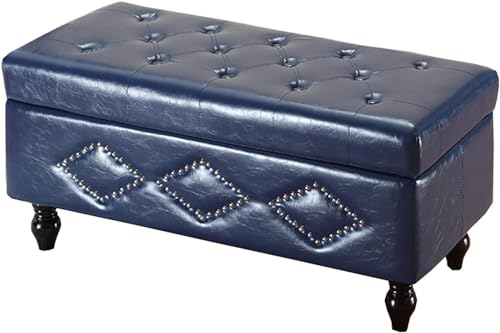 Ottoman Footstool Rectangular sofa bench PU cushion Large capacity storage box Vintage rivet decoration Solid wood shoe bench Bearing weight 150kg Ottomans (Color : Blue, Size : 60cm/23.6in)