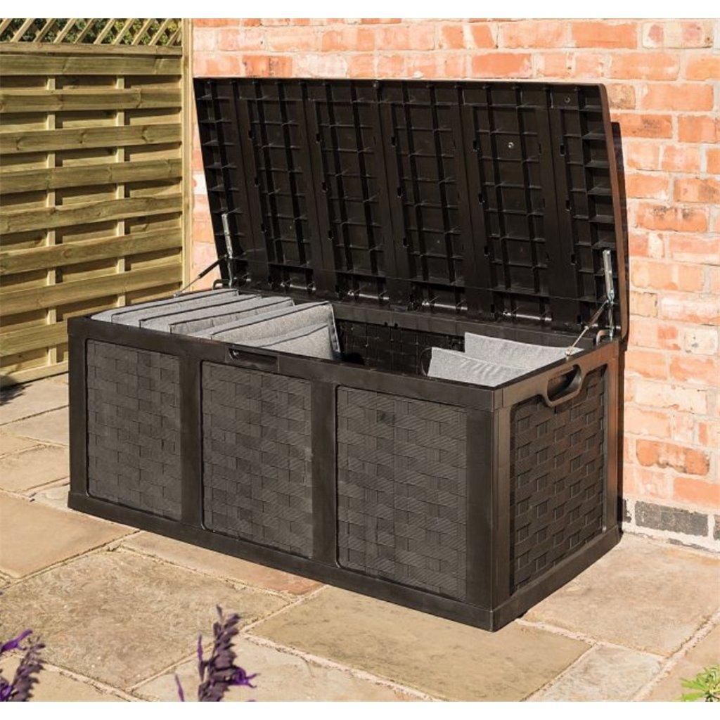 335 Litre Rattan Style Garden Cushion Storage Box with Sit on Lid - Dark Brown