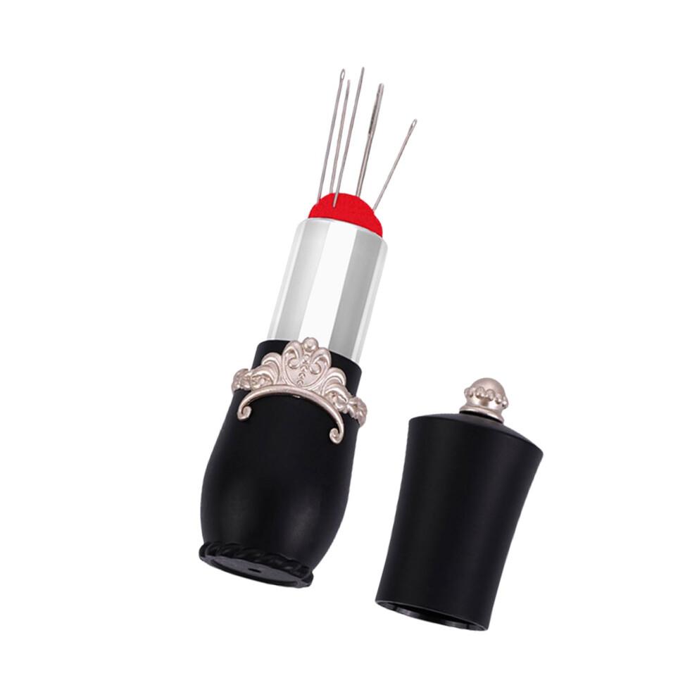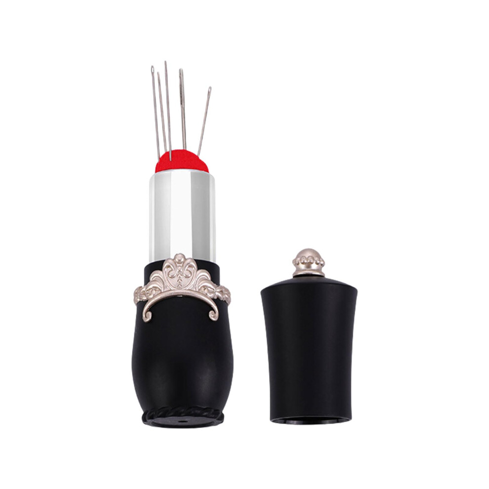 Lipstick-Shaped Pin Cushion Storage Box for Sewing Needles, Quilting Pins Holder, Black Color, Quilting Accessories