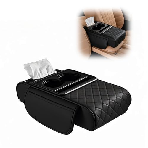 Multifunctional Car Armrest Cushion - 2-in-1 Auto Armrest Cushion, Storage Box, Arm Rest for Car with Tissue Box and Cup Holder