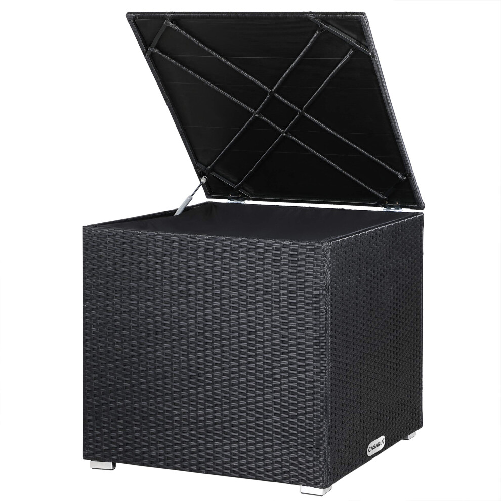 CASARIA® Polyrattan Garden Cushion Storage Box With Lid | 318 Litre Capacity 75x75x70cm | Waterproof Weatherproof Outdoor Shoe Organiser Parcel Chest | Gas Pressure Lifting Spring | Black