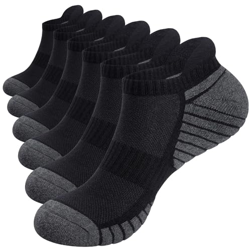 Alaplus Running Socks Cushioned Sports Socks Ankle Socks Trainer Socks for Men Women Ladies Cotton Low Cut Athletic Socks (6 Pairs)