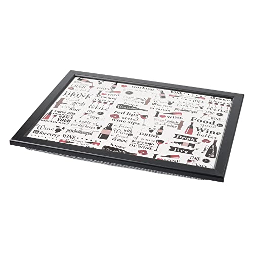 Invero Deluxe Lips and Sips Printed Cushioned Lap Tray with Wooden Frame and Bean Bag Cushion Base Ideal for Breakfast in Bed or Dinner - 44cm x 34cm