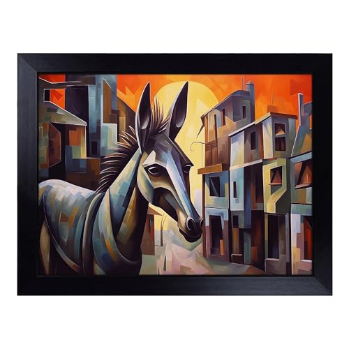Cushioned Lap Tray with Bean Bag Base for Laptop & Eating – Abstract Art Horse Design | Padded Lap Desk for Sofa, Bed & Work | Portable TV Dinner & Breakfast Tray, Easy Clean Surface