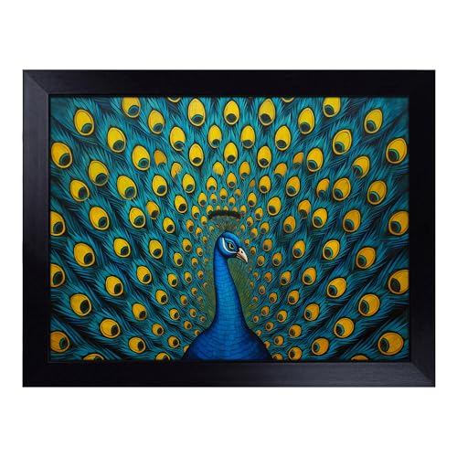 Cushioned Lap Tray with Bean Bag Base for Laptop & Eating – Peacock Geometric Design | Padded Lap Desk for Sofa, Bed & Work | Portable TV Dinner & Breakfast Tray, Easy Clean Surface