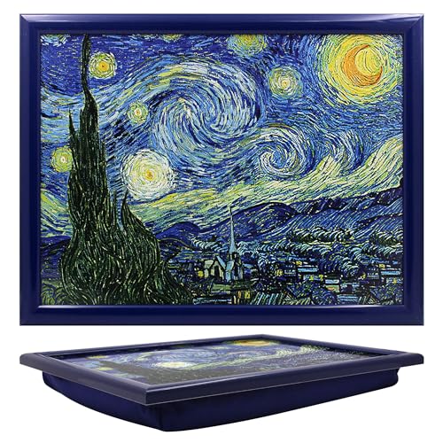 Lesser & Pavey Starry Night Cushioned Lap Tray | Bean Bag Lap Trays With Padded Cushion | For Drinks Food Breakfast Laptop | Lovely Cushioned Lap Tray For Home & Office - Vincent Van Gogh