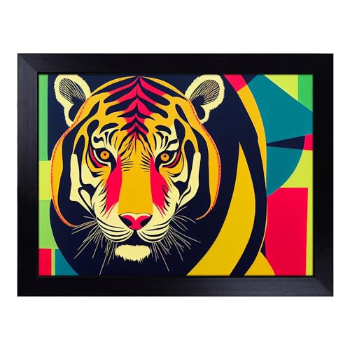 Cushioned Lap Tray with Bean Bag Base for Laptop & Eating – Colourful Tiger Abstract Design | Padded Lap Desk for Sofa, Bed & Work | Portable TV Dinner & Breakfast Tray, Easy Clean Surface
