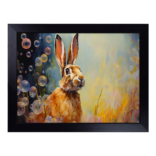 Cushioned Lap Tray with Bean Bag Base for Laptop & Eating – Hare Bubbles Design | Padded Lap Desk for Sofa, Bed & Work | Portable TV Dinner & Breakfast Tray, Easy Clean Surface