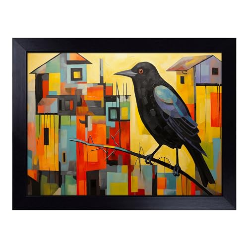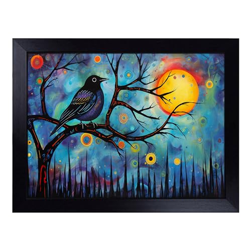 Cushioned Lap Tray with Bean Bag Base for Laptop & Eating – Crow Expressionism Design | Padded Lap Desk for Sofa, Bed & Work | Portable TV Dinner & Breakfast Tray, Easy Clean Surface