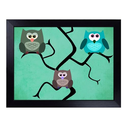Cushioned Lap Tray with Bean Bag Base for Laptop & Eating – Owls In A Tree No.1 Design | Padded Lap Desk for Sofa, Bed & Work | Portable TV Dinner & Breakfast Tray, Easy Clean Surface