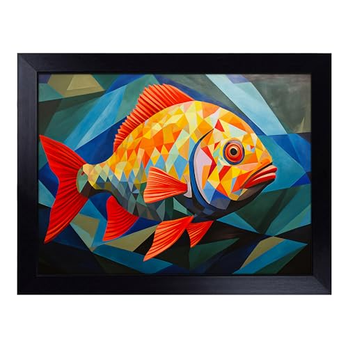 Cushioned Lap Tray with Bean Bag Base for Laptop & Eating – Fish Geometric Design | Padded Lap Desk for Sofa, Bed & Work | Portable TV Dinner & Breakfast Tray, Easy Clean Surface