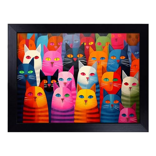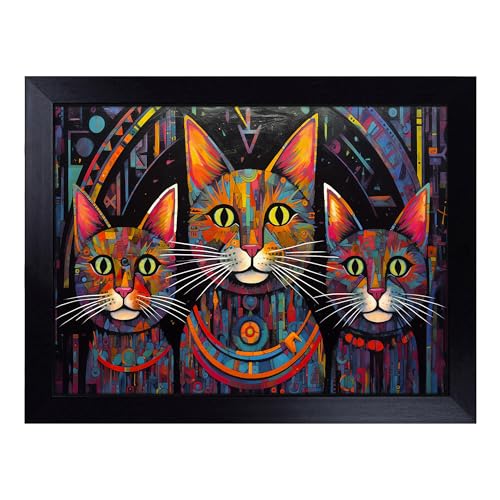 Cushioned Lap Tray with Bean Bag Base for Laptop & Eating – Artistic Cat Abstract Design | Padded Lap Desk for Sofa, Bed & Work | Portable TV Dinner & Breakfast Tray, Easy Clean Surface