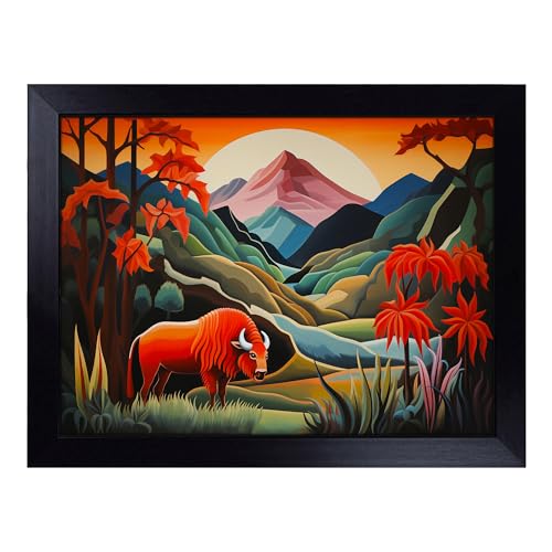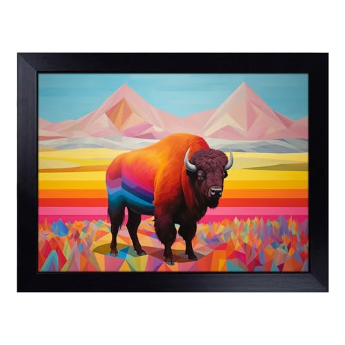 Cushioned Lap Tray with Bean Bag Base for Laptop & Eating – Bison Buffalo Art Deco Design | Padded Lap Desk for Sofa, Bed & Work | Portable TV Dinner & Breakfast Tray, Easy Clean Surface