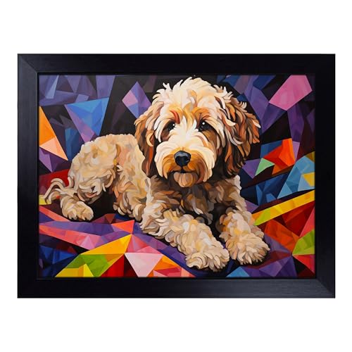 Cushioned Lap Tray with Bean Bag Base for Laptop & Eating – Cockapoo Geometric No.2 Design | Padded Lap Desk for Sofa, Bed & Work | Portable TV Dinner & Breakfast Tray, Easy Clean Surface