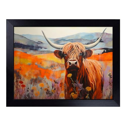 Cushioned Lap Tray with Bean Bag Base for Laptop & Eating – Highland Cow Colour Field Design | Padded Lap Desk for Sofa, Bed & Work | Portable TV Dinner & Breakfast Tray, Easy Clean Surface