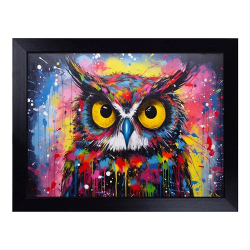 Cushioned Lap Tray with Bean Bag Base for Laptop & Eating – Owl Pop Art Design | Padded Lap Desk for Sofa, Bed & Work | Portable TV Dinner & Breakfast Tray, Easy Clean Surface
